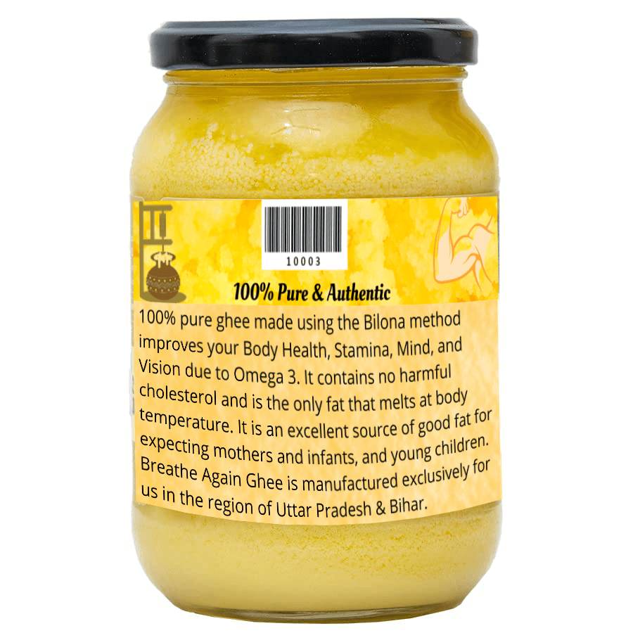 Pure Desi Ghee is a unique product that has been carefully produced in small batches to ensure the highest quality and freshness. Our ghee is made from desi grass-fed cows milk using the ancient Vedic bilona method. Our desi ghee helps you breathe easier and may help reduce asthma symptoms, reduces inflammation of the airways, and provides a soothing effect on the throat.